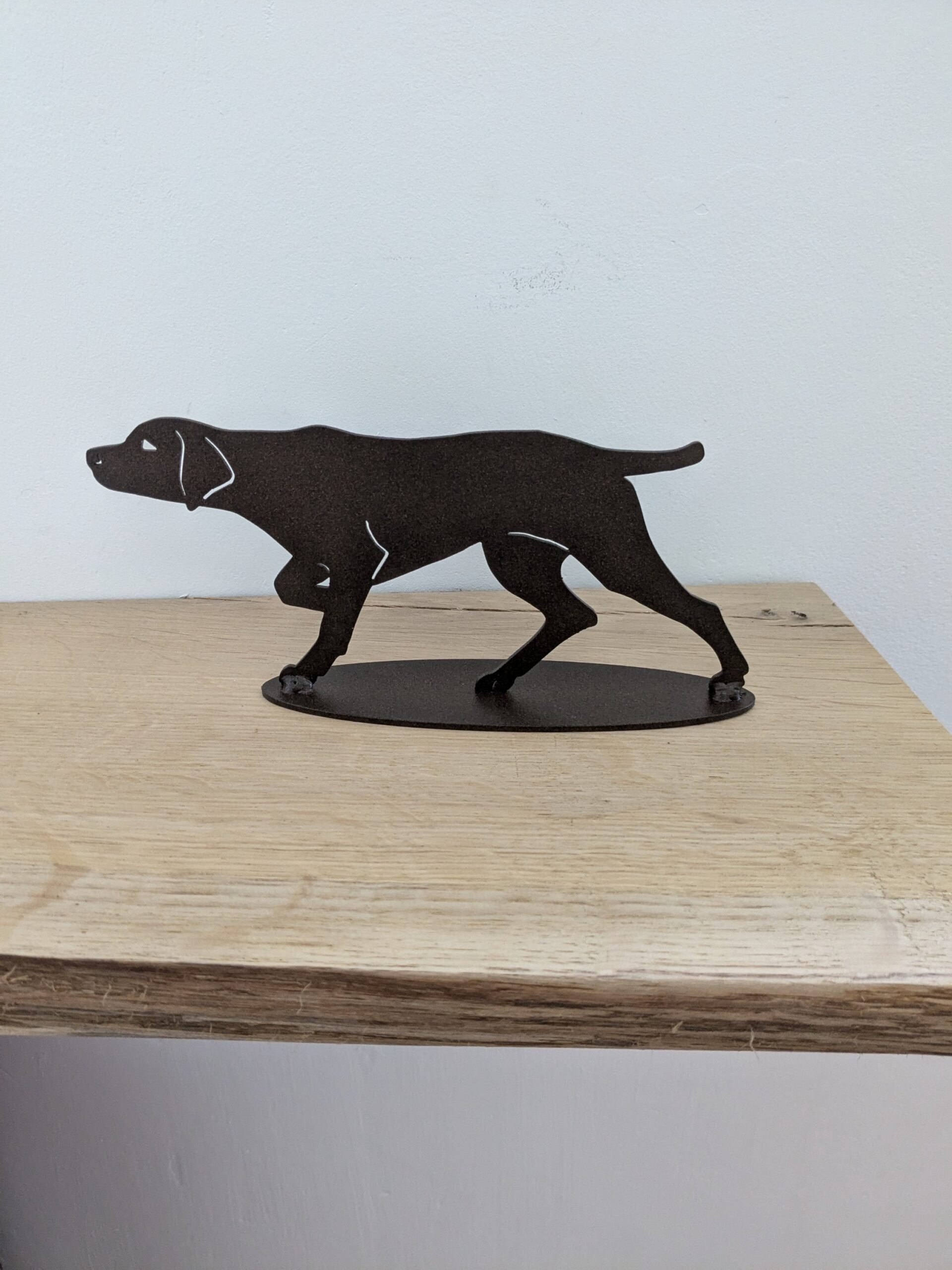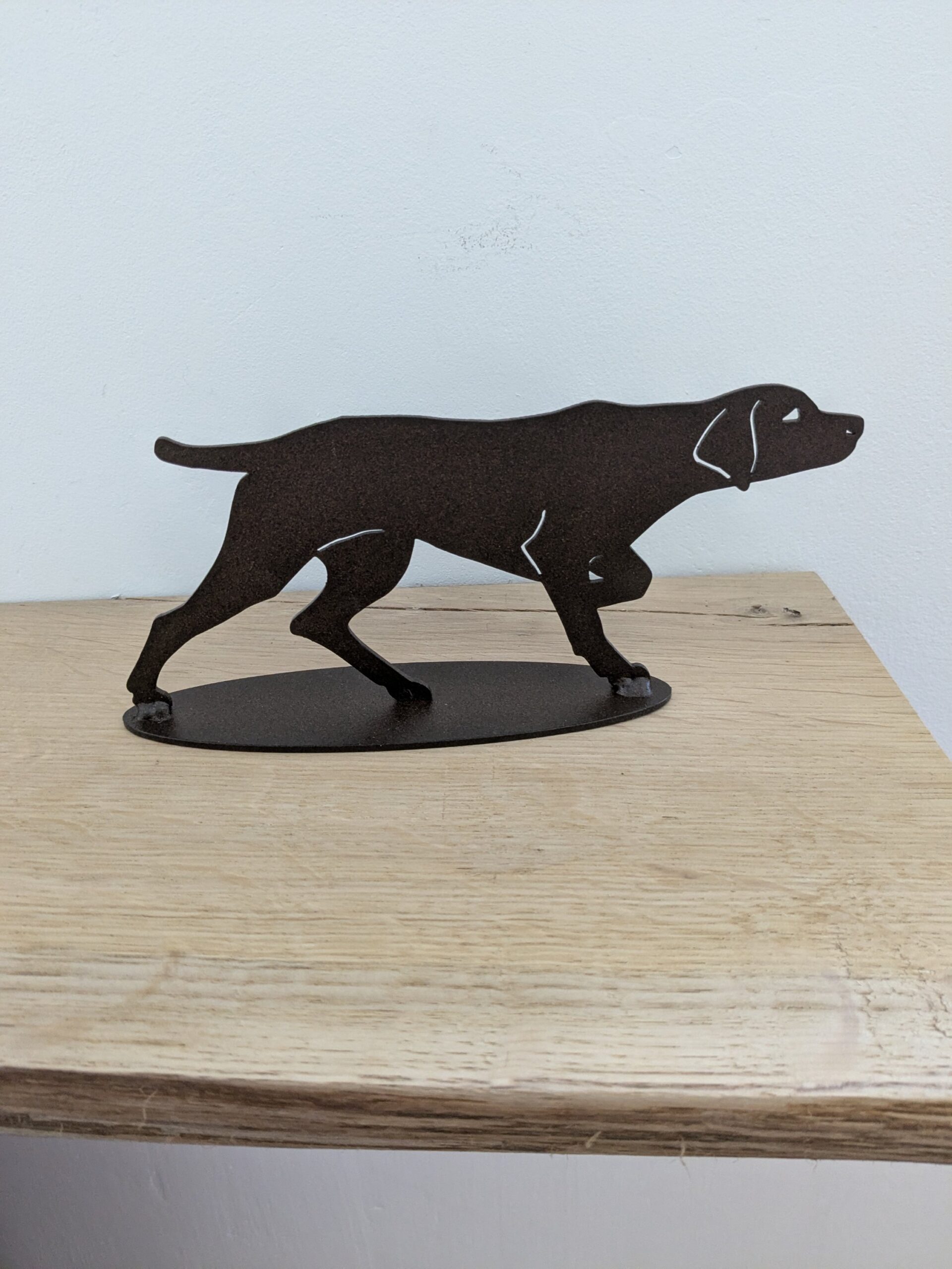 chien d’arrêt sur socle acier acier 2mm, dessiné à la main. Cet objet de décoration intérieure donnera une touche campagne à votre maison et ravira les amateurs de nature.