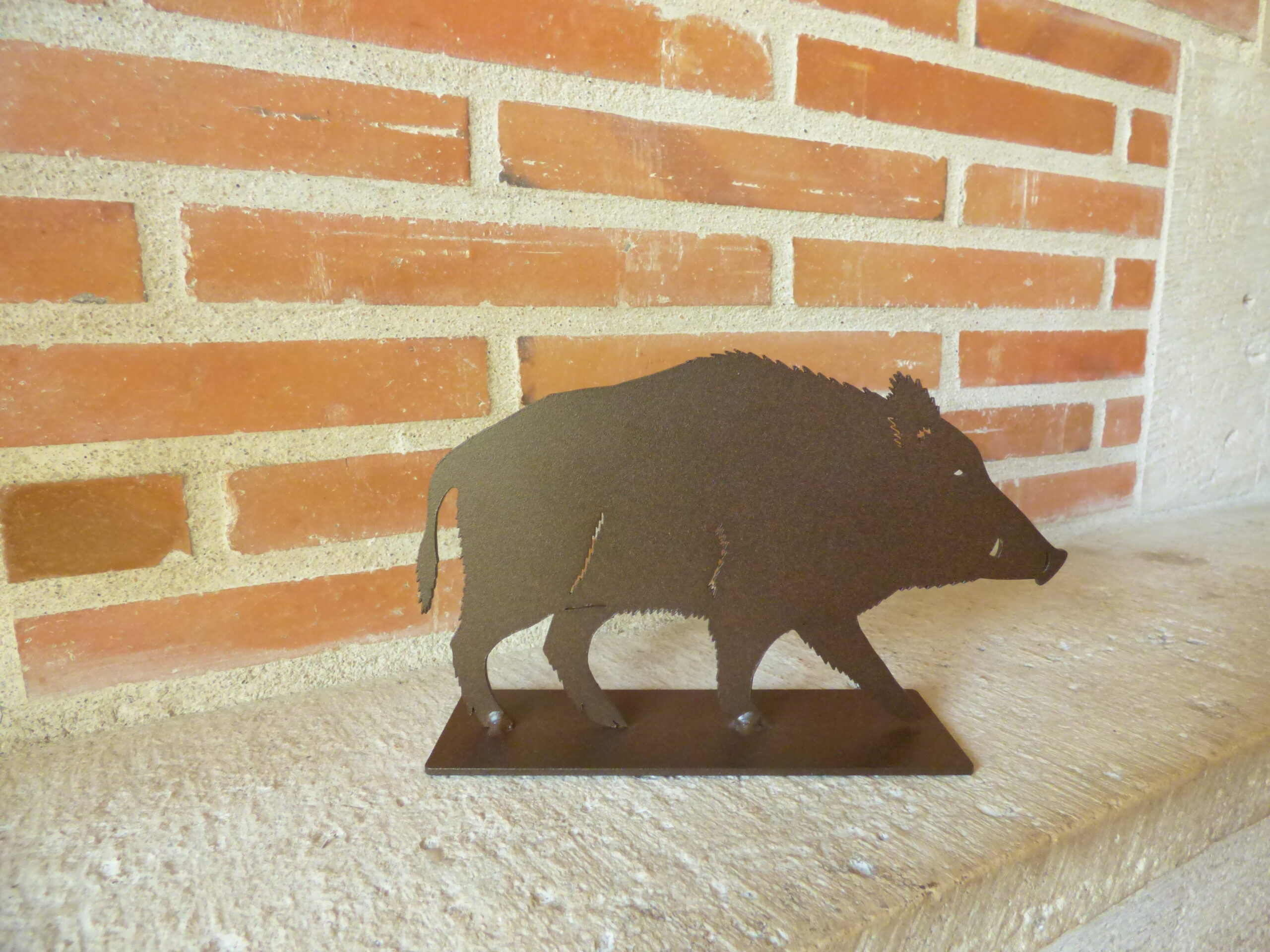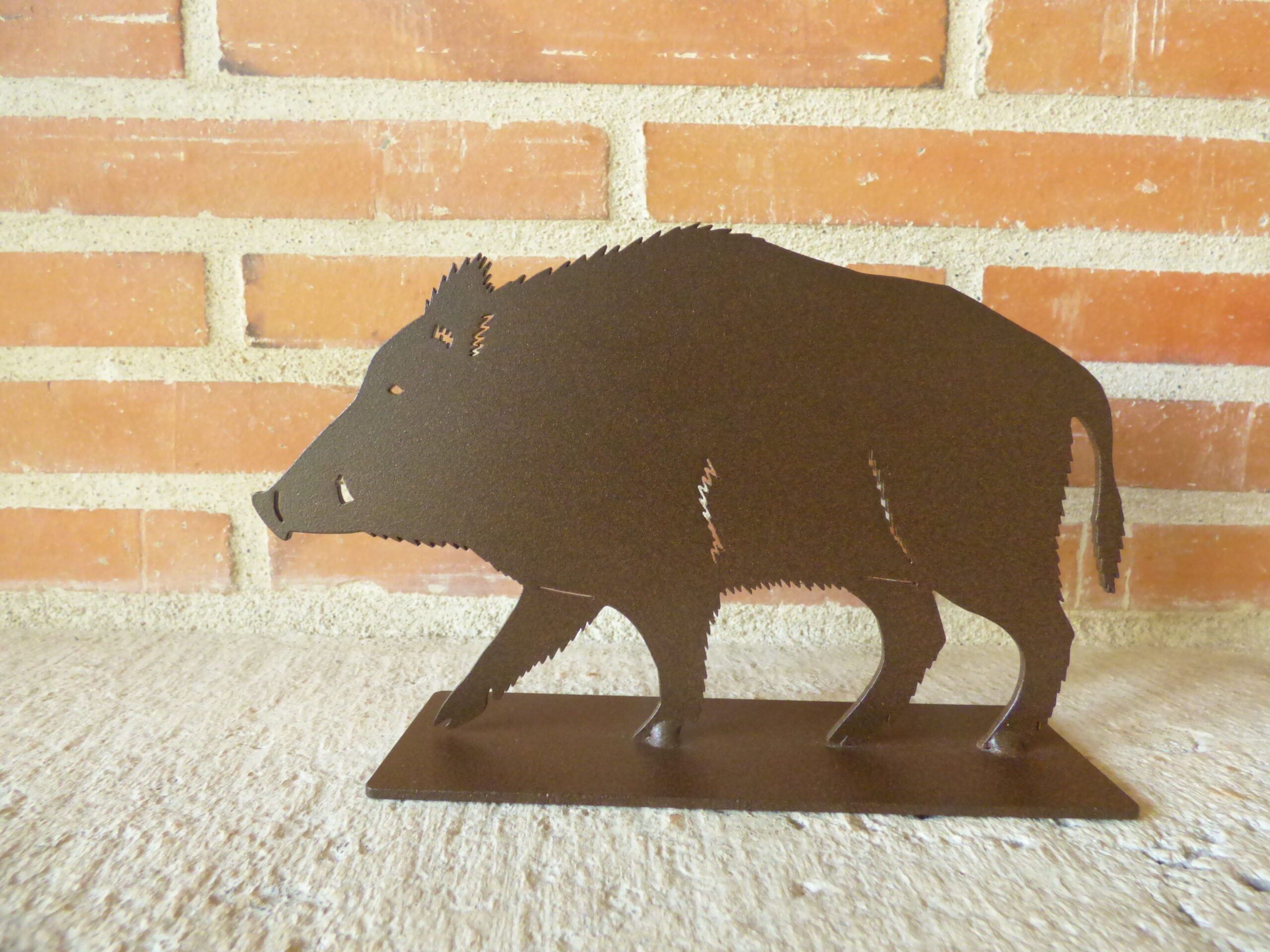 Sanglier sur socle acier acier 2mm, dessiné à la main. Cet objet de décoration intérieur donnera une touche campagne à votre maison et ravira les amateurs de nature.