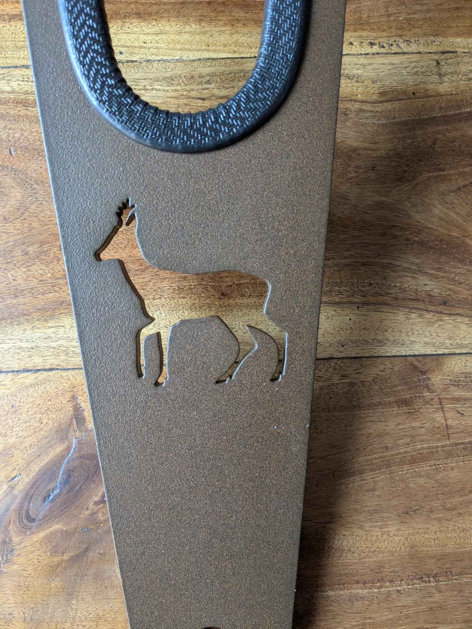 Tire-bottes en acier 8mm avec caoutchouc antidérapant, thermolaquage marron foncé motif chevreuil. Artisanat français