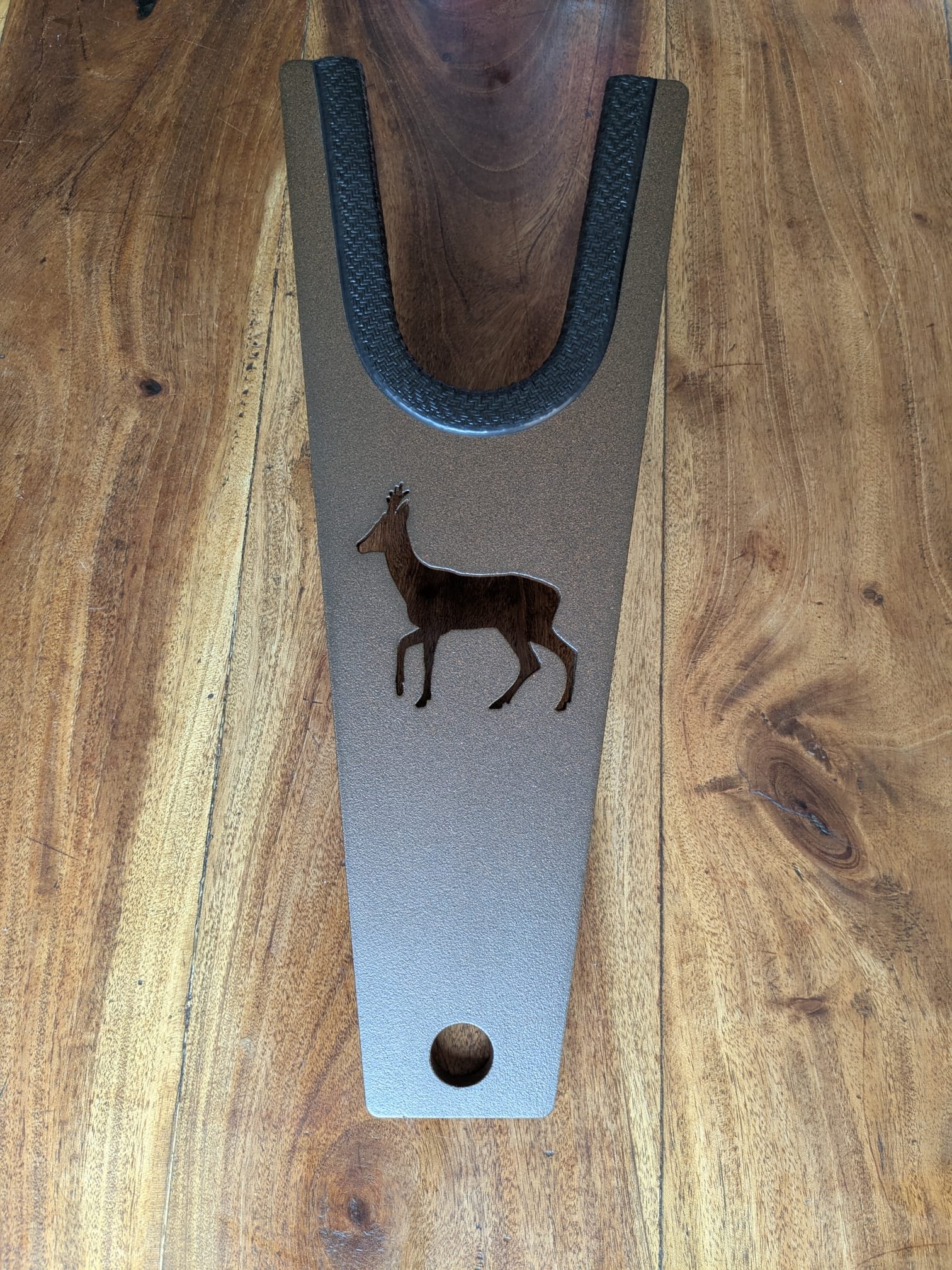 Tire-bottes en acier 8mm avec caoutchouc antidérapant, thermolaquage marron foncé motif chevreuil.